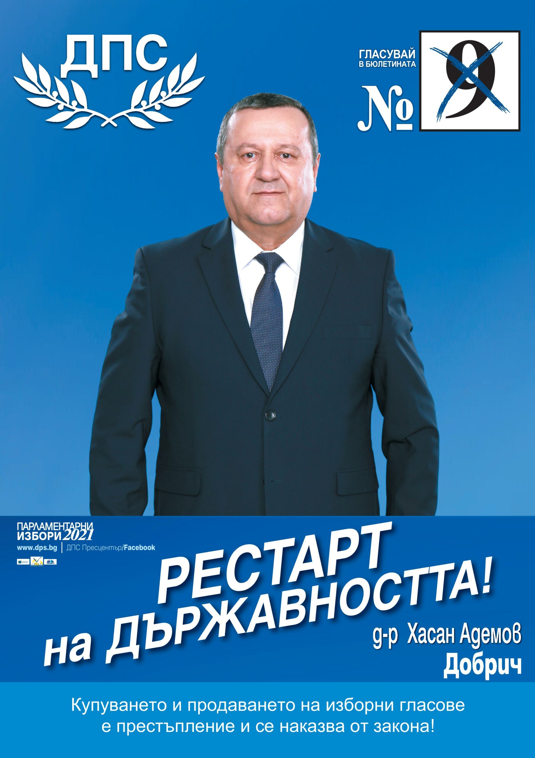 Д-р Хасан АДЕМОВ – водач на листата на ДПС в Добрички регион:Аз съм готов да бъда Вашия силен Добруджански глас в 45 Народно събрание!